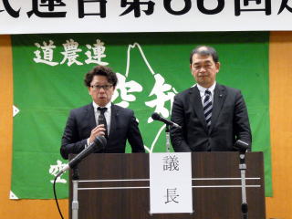 総会議長には、芦別市農民協議会 山崎直人委員長と峰延農民協議会 森川雅夫委員長の両名が選出され議案審議に入った。